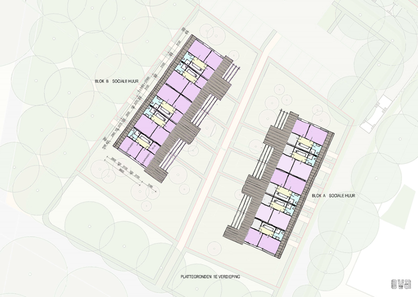 De 10 sociale huurwoningen zijn slim ontworpen en praktisch ingedeeld. Ze bieden een royale woon- en leefkeuken op de begane grond en een verdieping met kap, waar zich twee comfortabele slaapkamers en een moderne badkamer bevinden. Met een gebruiksoppervlakte van circa 75 m² en kavels van ongeveer 105 m² geniet je van een lichte, open sfeer en optimaal wooncomfort. Deze woningen combineren betaalbaarheid met stijl en functionaliteit, ideaal voor iedereen die prettig wil wonen in een prachtige omgeving!