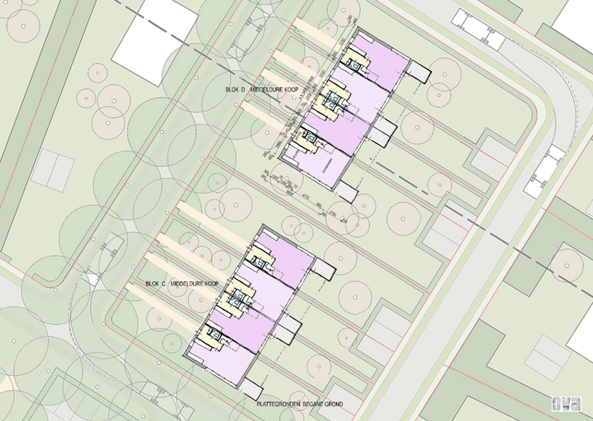 De 8 rijwoningen in de middel dure koopsector combineren comfort en stijl met een slimme indeling. Op de verdieping met kap bevinden zich twee comfortabele slaapkamers en een moderne badkamer, ideaal voor starters of kleine gezinnen.